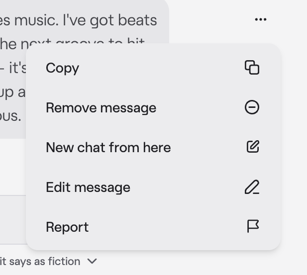 Branches offer a solution for users wanting to break out of the linear-constrains of a conversation. To maintain user control and usability, retain footprints back to the original, and clues for what is changing as the generative path progresses. Open-canvas layouts introduced by tools like Flora Fauna aid by making this visual, but it's harder in text-based contexts.