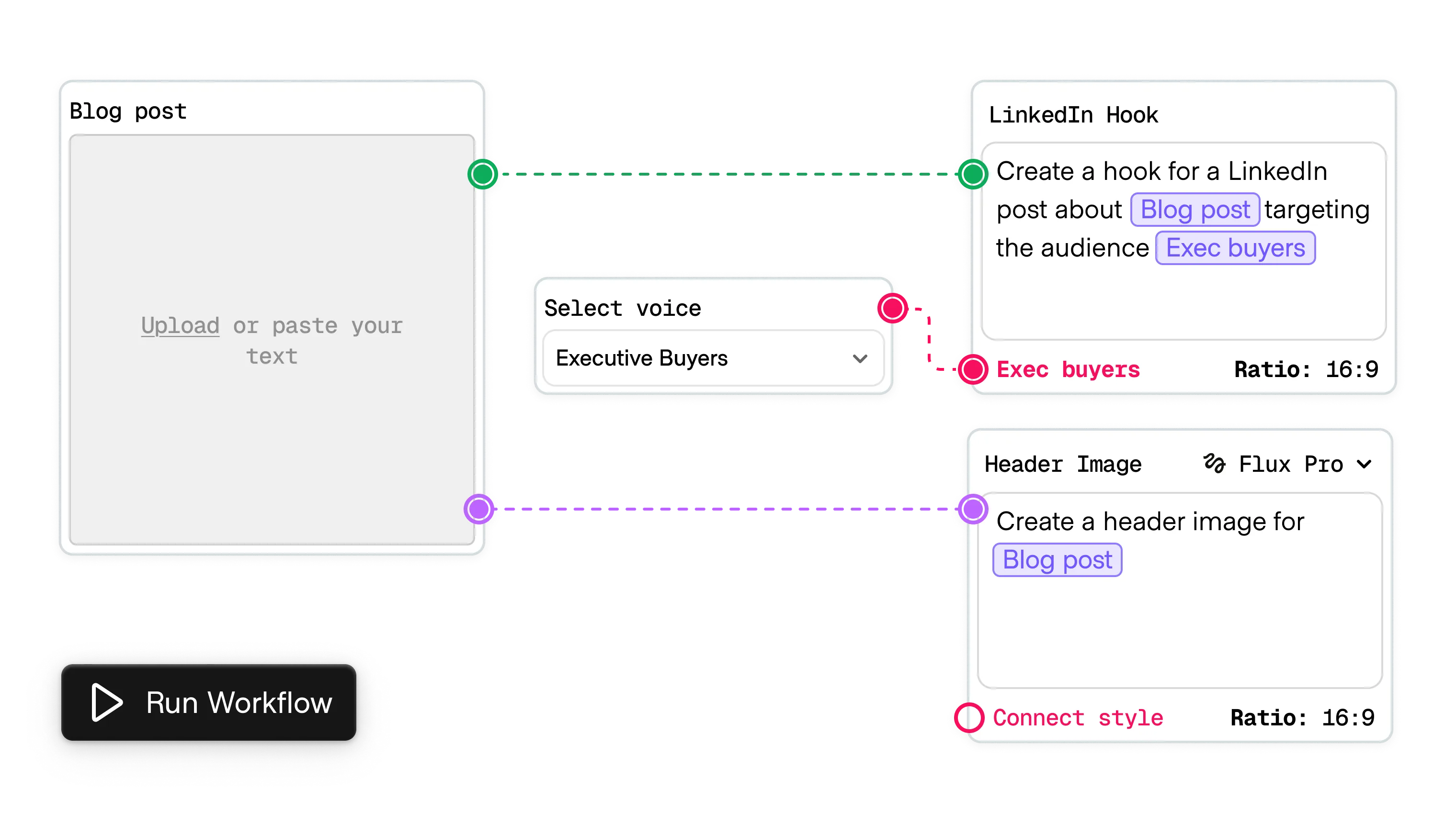 In this multi-step action, prompts, parameters, and tools live as nodes on an infinite board and connect through their edges, like a flow diagram. Users can map a run ahead of time, branch on any step, and see how each decision influences downstream results.