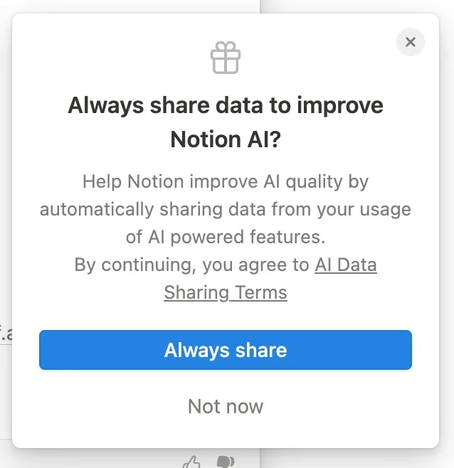 Notably, when Figma announced their AI features at their Config conference in 2024, they took the approach of defaulting the option to "off." This could signal a departure from the norm towards customer-first defaults.