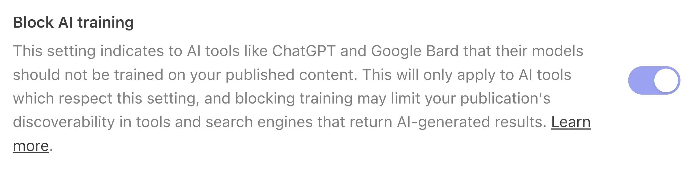 Most commonly, this setting defaults to "on." This is the case for ChatGPT, Substack, GitHub, and many other big players in the space.