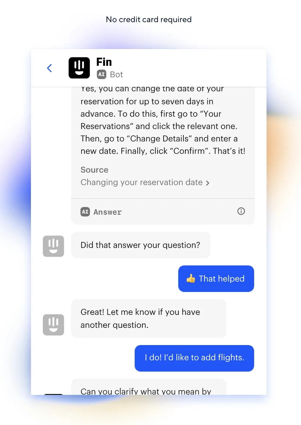 Intercom’s AI agent Fin is clearly marked with an AI indicator whenever it interacts with the user.