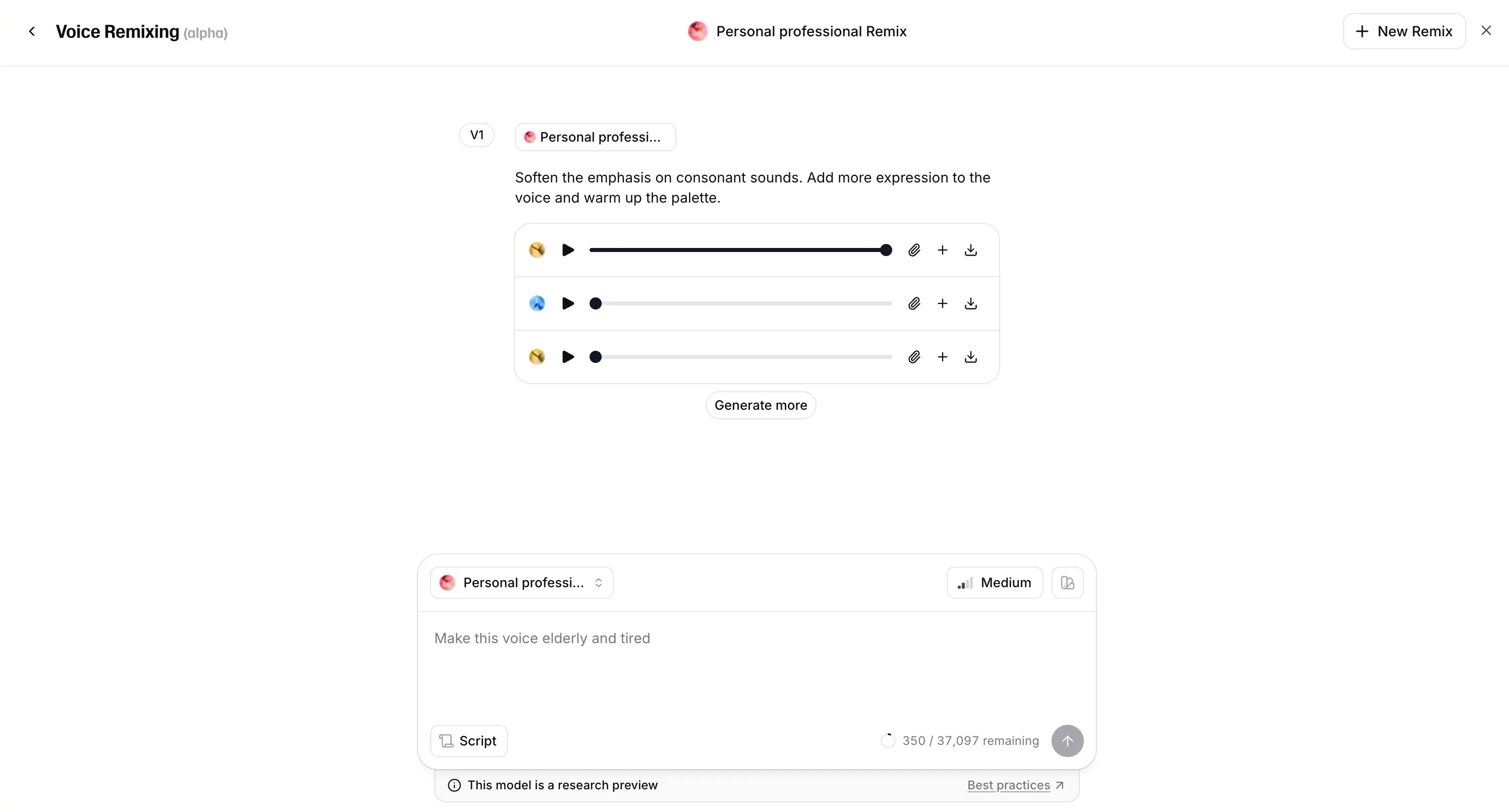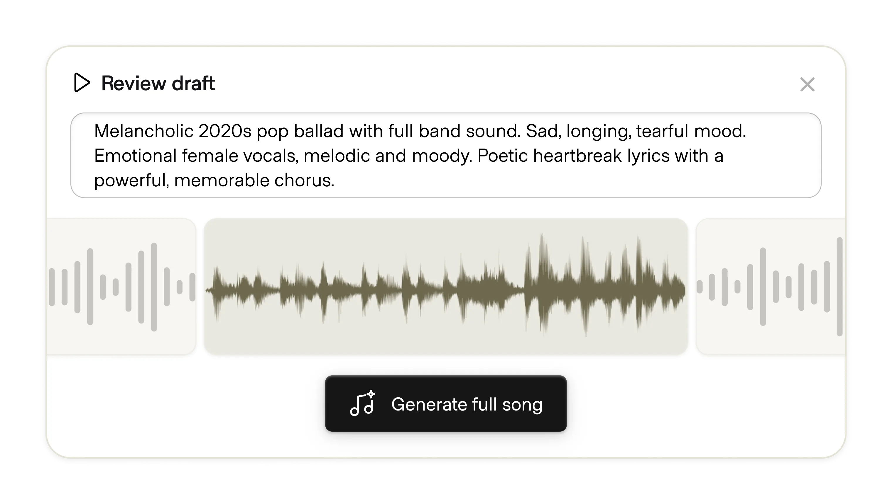 Decreasing the initial length or size of content also has the effect of creating within a drafting context. Audio and video generations, for example, often produce a short snippet of a high quality run for the user to review before expanding.