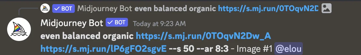 Generative mode: In creative and exploratory tasks, footprints act as trails that let people branch, replay, or reuse earlier prompts and outputs. They support non-linear exploration in otherwise linear surfaces like chat. Midjourney, for example, shows the full prompt and parameter list with every generation and allows users to send them to the input box in a single click, making it easy to re-try previous runs or pick up a dropped branch.
