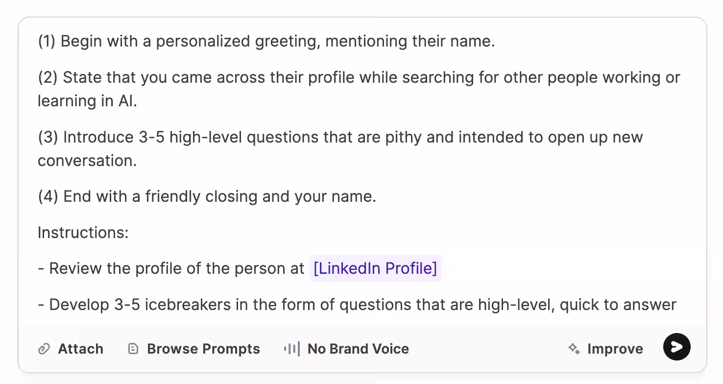 This pattern works best when the task is known, the inputs are predictable, and the process repeats often. Creating a product requirements document, drafting release notes, or writing standard outreach emails all fit this mold. The underlying structure is fixed, but specific values shift each time.