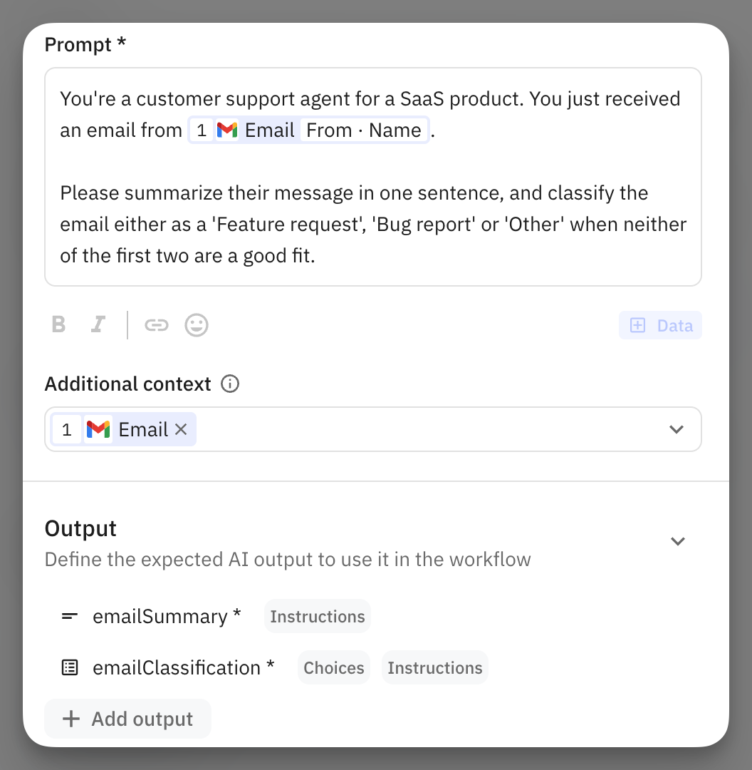Madlibs are commonly seen in workflows. The user may enter a trigger (or it may be automated), and the rest of the workflow fires off seamlessly. Examples could include syncing notes from a meeting captured in Gong into Salesforce notes.