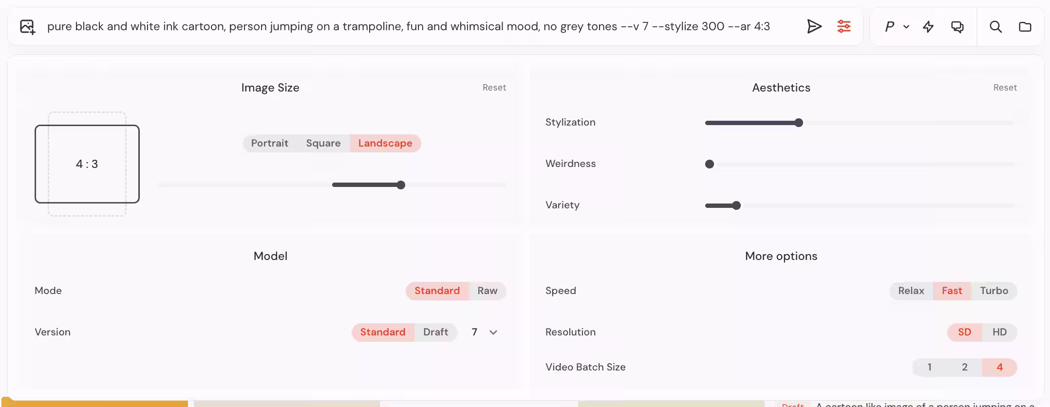 Options that control cost or speed of generation, or the general format of the final generation such as length or aspect ratio may need to be more visible or even available by default from the input field.